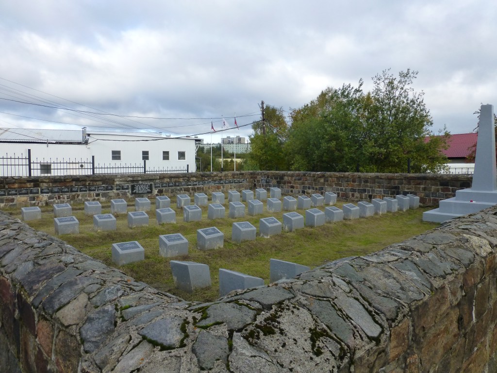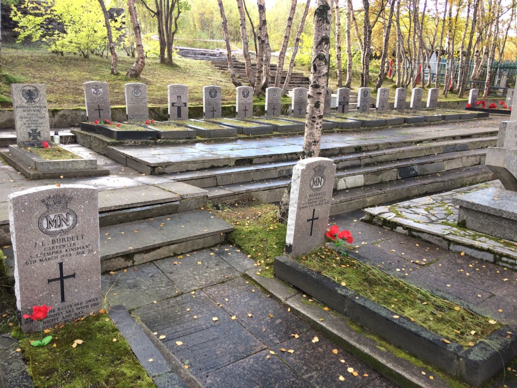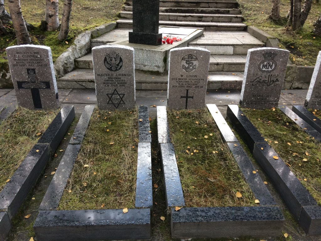 On our final morning we paid a quick visit to the two cemeteries containing the graves of British, Commonwealth and Allied soldiers, sailors and airmen who died in the two World Wars. Many British sailors lost their lives at sea in the Arctic convoys bringing supplies to the Soviet Union, very few of them have graves.