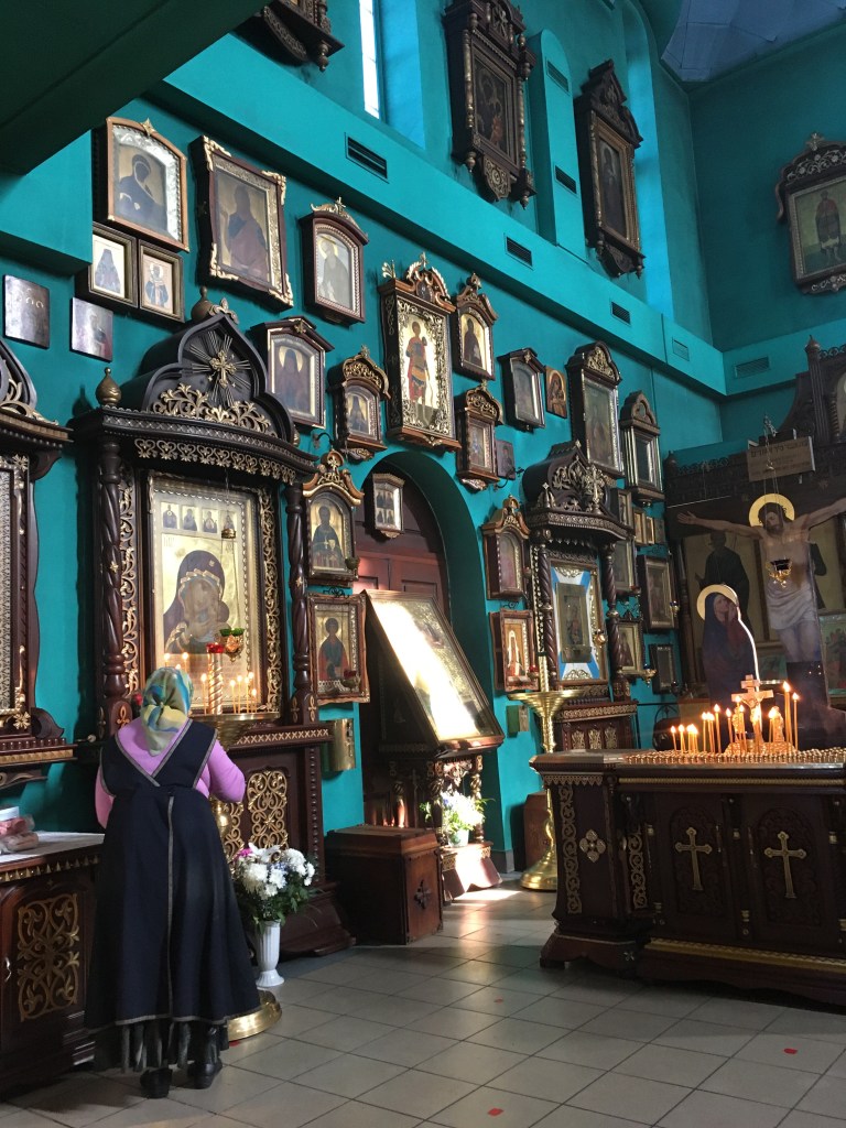 After an excellent lunch of rabbit and mushroom pie at Shtolle, a fabulous pie shop, I went to the Fine Arts Museum. A friend had said that I could while away an hour there, unfortunately I couldn’t – I only managed about 40 minutes! It is TINY. I kept wondering if I had missed the main room but I hadn’t. However the staff couldn’t have been more friendly and helpful. On arrival I asked to buy one ticket in English which sent the lady in the kassa into a bit of flap so I repeated it in Russian. She indicated that she had understood and told me to wait as she got on the phone to an unseen person who presumably spoke English. Slightly bemused, I did as I was told, wondering what was so complicated that she needed a translator to sell me a ticket to the museum. When the second lady appeared she explained that there are several different exhibitions and which ones did I want to see. I chose the two permanent ones and the temporary one on ‘Towels’!!!! The ‘towels’ exhibition turned out to be a tiny room with batik designs on silk scarfs by presumably local, Russian artists. Moving on to the main exhibition hall I found a large room of mostly 20th Century paintings and a handful of royal portraits. Many of the paintings had AR (augmented reality) signs beside them however the phone I use in Russia is so old that it won’t support the AR app so I was able to glean nothing more than the artists name and when it was painted. There did not appear to be any common thread to any of the paintings hanging there! Finally I went into the small exhibition room (very apply named I have to say) where I found icons, and handicrafts. As I tried my best to linger and show an interest in the displayed items the lady on duty called for back-up and my English speaking friend re-appeared to give me some information about what I was looking at. Whilst chatting she told me that when she was studying English during the Soviet times, the best of the best students would get to go to London and they come back telling the others all about the amazing vacuum cleaners we had! As I say the staff were so friendly and obviously very proud of their tiny museum.