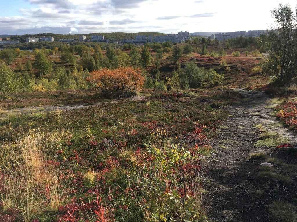 Alyosha is a gigantic concrete soldier erected to commemorate the Arctic fighters who died in WWII. He stands high on a hill overlooking the Kola inlet with superb views of the docks, the inlet and the moors beyond. It is about a 45 minute walk from the centre of town (though you can get a bus most of the way) with the last part on a path through the moorland. The moor was looking wonderful. It is autumn in Murmansk and the leaves of the small low lying berry bushes (blueberries, myrtle and lingonberries) had all turned a wonderful shade of red. On the other side of the inlet one could see all birch trees turning yellow and orange.