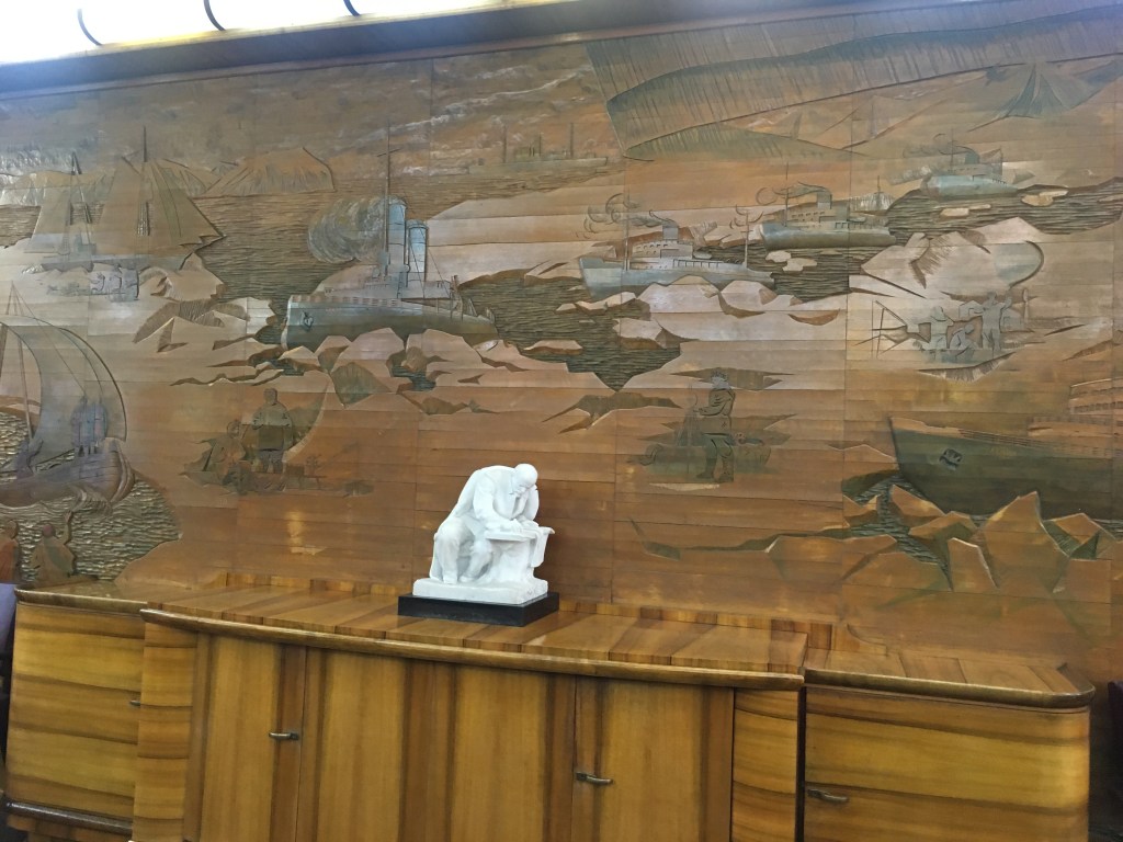 Now it turns out that there is very little to do and see in Murmansk and one of the main highlights – the world’s first nuclear powered ice-breaker ‘Lenin’ – was closed due to COVID. Fortunately the delegates from my husband’s conference were being given a tour of ‘Lenin’ so I cleverly blagged myself a badge and joined them! It is large and luxurious with the grandeur of a bygone age, lots of brass and highly polished wood. It apparently also had a swimming pool on board (indoor I hope!) but sadly we didn’t see that. After the tour I left the delegates to it and set off to see the other main attraction.