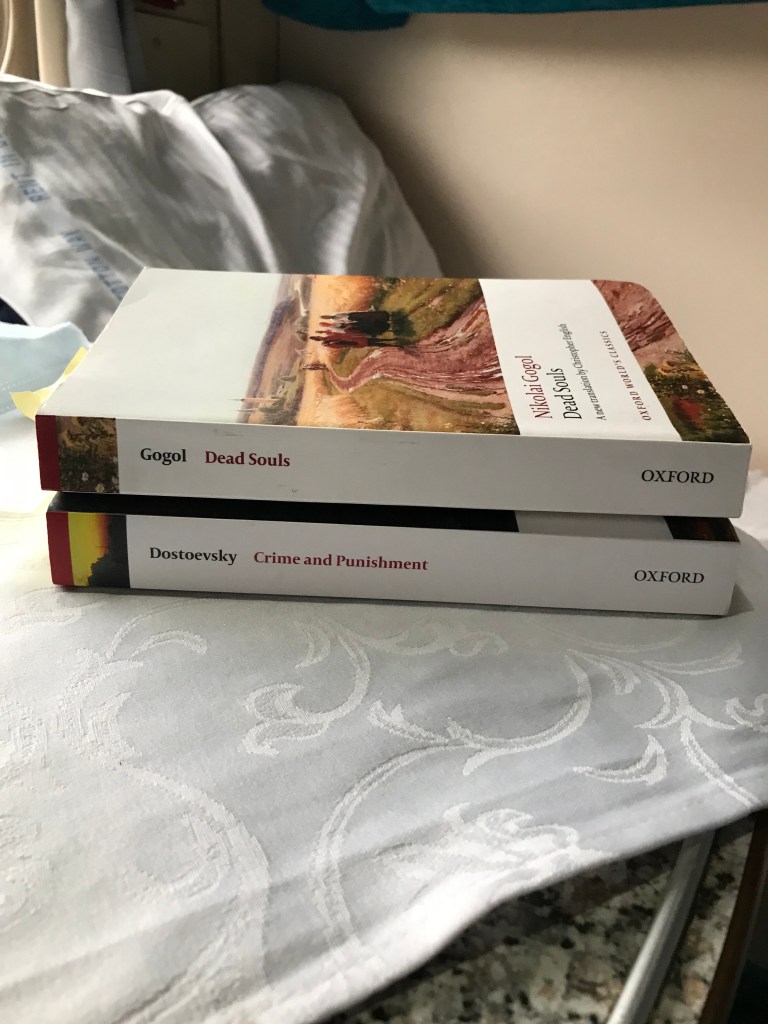 Sitting on a train for two days would be an excellent opportunity for lots of reading you would think. Maybe some Tolstoy or Chekov but I was mesmerised by the passing, and unchanging, scenery (and terrified that I might miss something!!) so mostly sat staring out the window (listening sometimes to a pod-cast or music but often not). I did manage to start and finish Dead Souls by Gogol during our two week trip but mostly after it had got dark and I couldn’t see out the window.