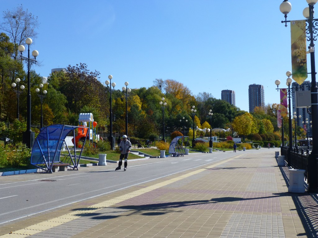 The Amur is the world’s tenth longest river and forms the boarder between the Russian far-east and China. The river contains many fish including the kaluga (large sturgeon) which can reach 5.6 meters long (18 feet)! The area around the river is home to the Amur tiger and the Amur leopard. We spent just one night in the city in a private room at the very excellent and very cheap кают-компания. According to our guide book the main activity in Khabarovsk is walking; and it wasn’t wrong. We were lucky with the weather and spent a lovely day walking through the town and in the riverside park plus visiting the interesting Regional Museum. Standing on the banks of the Amur we could see China in the distance.