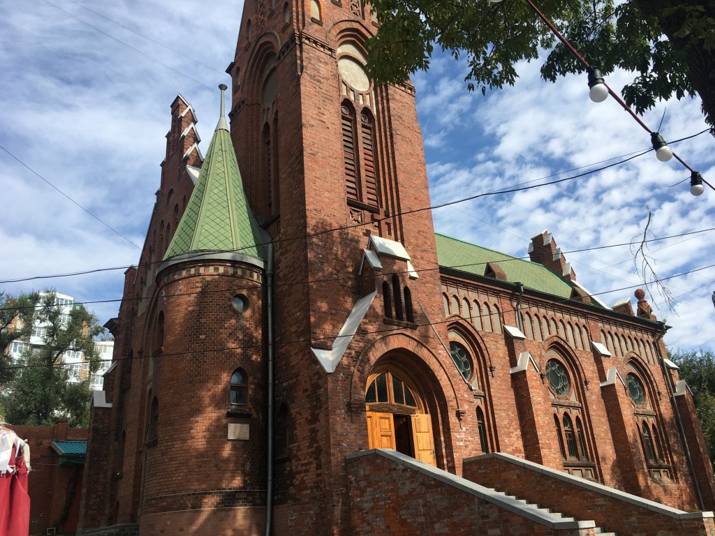 Vladivostok has a completely different feel to it than any other Russian city that I have been too. It has a much more laid back relaxed ocean city vibe and is very similar to San Fransisco in many ways. The two cities are almost directly opposite each other, they are both hilly, windy, have very long suspension bridges, have sea fog that hangs over the water hiding the bridges, they even both have prison islands just off the mainland. We spent two days there, the first day on the city tour, and in the evening wandered down to the water front where we promenaded with everyone else before going for an excellent Asian fusion meal. The next day we did a lot of walking around on our own, found a lovely old Lutheran church – one of the oldest buildings in the city, great views of the suspension bridge, took a funicular down to the waterfront and strolled past the Naval dockyard and discovered a large biker convention in the centre of town.
