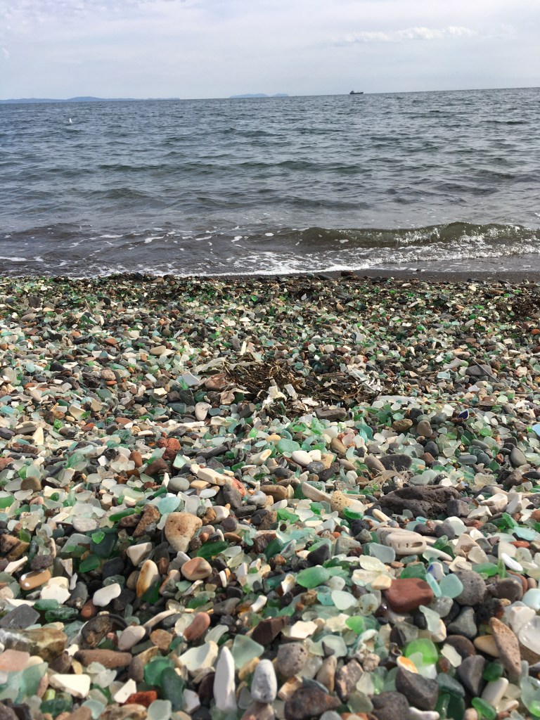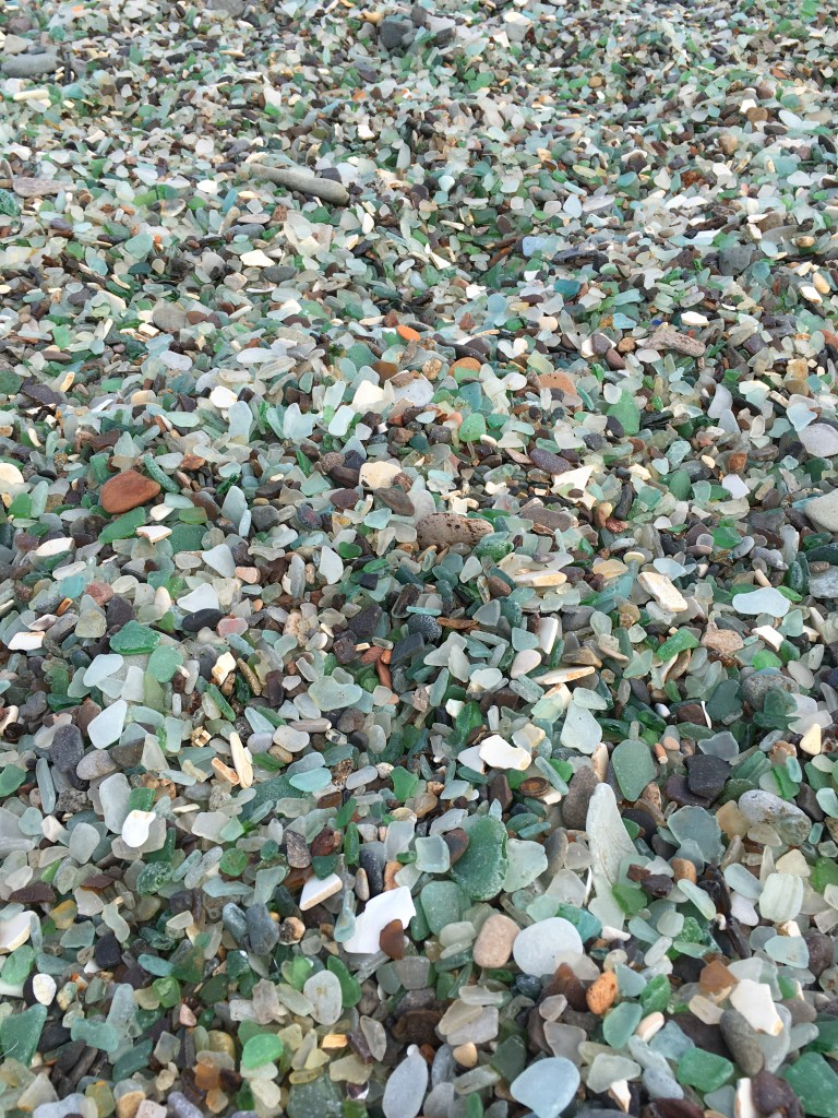 In the afternoon we took a taxi to visit the amazing Glass Beach. Here the pebble beach is full of sea glass pebbles of different colours that sparkle in the sun. Apparently the scientists are not quite sure why all the sea glass has washed up on this particular beach though the locals say it is because it was a dumping ground for a nearby glass factory.